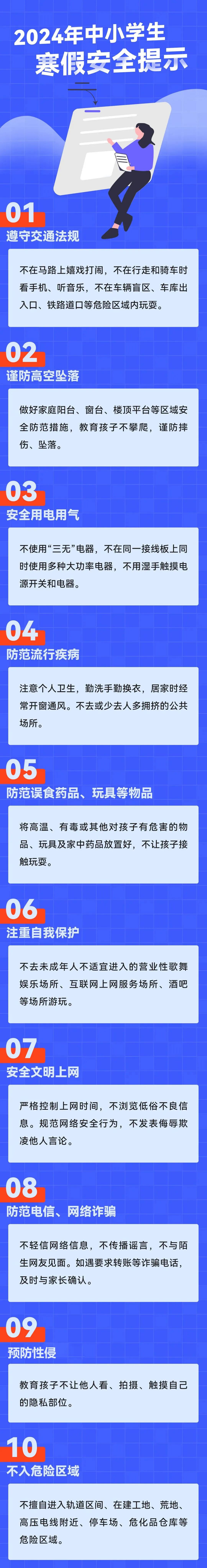 9.强化安全教育:牢固树立“安全重于泰山”的思想。落实生命教育、环保教育、卫生教育、消防教育、健康教育、心理教育、网络教育、交通教育等,定期开展消防、地震疏散演练活动。